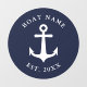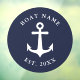 Nautical Anchor Boat Name Navy White Simple Round Window Cling