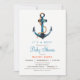 Nautical Anchor boy baby shower invitation. Invite features blue anchor and orange sea turtle pattern.