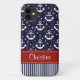 This custom navy blue and white anchor pattern with stripes, hearts and a polka dot pattern can be personalized with your name on the PRINTED red and white stitched ribbon look design. Accessorize your favourite gadget with this preppy and stylish nautical inspired design. This makes a cute gift for women, a captain's wife, teen or any girly girl. Artwork © Chrissy H. Studios, LLC. All Rights Reserved.