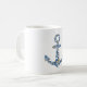 This captivating design features a creative anchor made entirely from various nautical elements like sailboats, compasses, lighthouses, treasure chests, and pirate icons. The intricate collage in blue and gold hues evokes a sense of adventure on the high seas. Whether you're a sea lover or a fan of marine aesthetics, this stylish and detailed artwork is perfect for bringing oceanic vibes to your mug. Sail into your day with a touch of maritime charm!