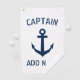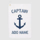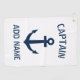 Nautical anchor custom boat captain name golf towel. Funny retirement gift ideas. Personalized presents for him or her. Custom golfing gifts for men and women. Vintage typography template for humourous quote. Fun golfing gift ideas for golfer, husband, dad, father, friend, co worker, boss, colleague, coach, instructor, trainer, teacher, grandpa, sailor, retired person, golf lover, retiree, pensioner etc. Add your own text or funny saying. Including hook to hang it up. Unique golf accessories for friends and family. White or custom colour background.