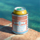 These funny, personalized foam can coolers are made in nautical shades of white, blue, and coral pink / salmon. They say, "Anchors down and bottoms up!" with room for your monogram and name. Below that, you can add three more custom lines of text, such as the name of your boat. The design also includes an anchor and two small starfish, along with a striped background. The design repeats on the back. Sail in style with your own personalized can cooler.