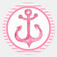 Nautical Anchor - Hot Pink Striped Classic Round Sticker
