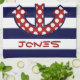 This cute and trendy kitchen towel has navy and white stripes and a red and white polka dot anchor. It will be a great addition to your home, boat or beach house decor. Customize with a name or monogram initial.