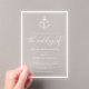 This classic elegant white nautical acrylic wedding invitation design features an anchor monogram at the top, with script calligraphy and a double frame.. Find matching products in the collection, or message me through Zazzle Chat for more products, colour variations, or other design tweaks.