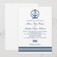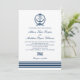 Set the tone for a classic coastal celebration with this wedding invitation featuring a navy anchor monogram crest and bold navy stripe accents. The clean white background and elegant script names feel timeless, crisp, and easy to personalize. Perfect for beach, yacht club, and nautical-themed weddings.