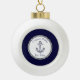 Nautical Anchor Navy Blue and White Ceramic Ball Christmas Ornament