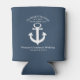 Beach weddings are hot, keep your guest's drinks cold with this fun nautical anchor design can cooler in navy blue or change background colour to match your wedding. Personalize text with bride and groom's names and destination spot or date.