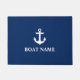 Nautical Anchor Navy Blue and White Your Boat Name Door Mat