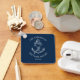 A navy blue nautical keychain with an anchor, and the words "welcome aboard" with your family name and established date. Cute accent for your boat. Designed for you by Blackberry Boulevard.