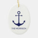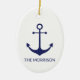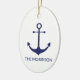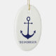 Nautical anchor navy blue white custom family name ceramic ornament