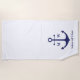 Nautical anchor navy blue and white personalized custom monogram initials and text beach towel.