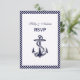 Elegant Nautical Anchor Navy Blue Diagonal Striped RSVP Card