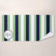Nautical Anchor Navy White Green Striped Beach Towel. Customize by adding Boat Name with the date Established