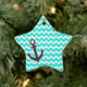 Nautical Anchor on Aqua Colour Chevron Ceramic Ornament