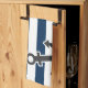 Nautical Anchor on Dark Midnight Blue Stripes Kitchen Towel