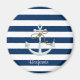 Nautical Anchor OnNavy Blue Stripes-Personalized Magnet
