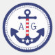 Nautical Anchor Patriotic Stars & Stripes Monogram Classic Round Sticker