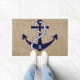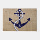 Vintage nautical anchor with rope on a faux burlap texture Personalized Initial Monogram door mat.