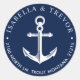 Navy coloured return address stickers tailored to a nautical style wedding.