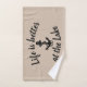 It was advertised as NAVY blue and the color sent was greenish blue. I am disappointed in this product. Quality and printing are great as are all my other orders. As you can see in picture the tea towel on right is perfect, hand towel not so much! Print was awesome and just as ordered