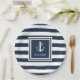 Nautical Anchor Rope Boat Name Navy Blue Striped Paper Plate