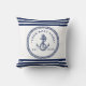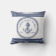 Nautical Anchor & Rope Boat Name Navy Blue & White Throw Pillow