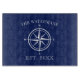 This cutting board will add a nautical coastal vibe to your beach house or regular home décor. It features a compass rose, with the family name and date established, with a navy blue background. *Please contact me if you need help with this design or would like matching products.