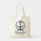 Chart your course with this nautical tote featuring a bold anchor encircled by twisted rope with a customizable location name in sweeping script and date below. A versatile monogram design perfect for a destination wedding welcome bag, bachelorette cruise, family reunion, or girls trip getaway. Location and date are fully customizable.
