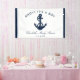 The nautical anchor design adds a timeless aesthetic to this baby shower banner. Featuring your pirate saying, and a navy blue anchor and rope, personalize to create a unique nautical banner for your upcoming baby shower.