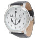 Nautical boat anchor watch with custom monogram initials and numbered plate. Cool sailing Birthday gift idea for men. Maritime theme watch design for sailor, skipper, boat captain, boss, dad, husband, uncle, grandpa, father, son, friend, co worker, employee etc.