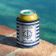 Nautical Anchor Wheel Striped Captain Name Can Cooler