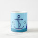 Simple, elegant Nautical image consisting of an Anchor with Double Monogram on a stylized blue sea background with two sailing ships. An elegant gift item for any occasion.