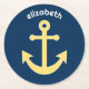 Nautical Anchor with Navy Yellow Chevron Pattern Round Paper Coaster
