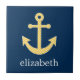Nautical Anchor with Navy Yellow Chevron Pattern Tile