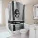 Ahoy there mateys! Decorate your home or beach house bathroom with this nautical design featuring an anchor, rope over black and white stripes. Personalize it with your family name or phrase.