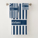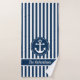 Nautical Anchor with Rope on Navy Blue Stripes Bath Towel Set