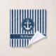 Ahoy there mateys! Decorate your home or beach house bathroom with this nautical design featuring an anchor, rope over navy blue and white stripes. Personalize it with your family name or phrase.