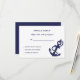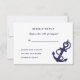 This modern and elegant design features a solid navy blue background and an nautical anchor with rope at the bottom corner. This card is perfect for a wedding with a nautical theme, a destination wedding or a beach wedding.
