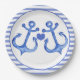 NewparkLane - Modern design Paper Plates, with a navy blue striped pattern and two anchors with a heart in between in a white circle.