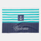 Nautical Aqua Blue Stripes Anchor Personalized Kitchen Towel