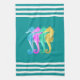 Nautical aqua/pink/blue/gold seahorses beach towel