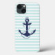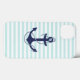 Nautical Aqua & White Stripes Navy Blue Anchor Case-Mate iPhone Case