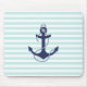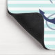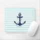 Nautical Aqua & White Stripes Navy Blue Anchor Mouse Pad