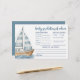On the right, guests are invited to fill in their best guesses for baby’s arrival, including date, time, weight, eye colour, hair colour, and who the baby will resemble. At the bottom, there's space for guests to leave a quick piece of advice for the parents-to-be and sign their name, creating a sweet keepsake to treasure. The back features a soft blue background, which can be changed to any colour to match your shower theme. Fully customizable, this card adds a bit of nautical charm while keeping things simple and thoughtful.