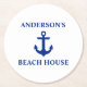 Nautical Beach House Family Name Anchor Round Paper Coaster