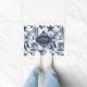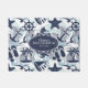 This doormat features a fun summer pattern of nautical elements including anchor, seagull, starfish and many more, all in navy blue with swirls and wavy aqua blue accents. Add your name and/or other text using the provided template. Search ID839 and ID840 to see other products with this design and additional colour options.