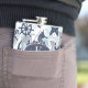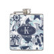 This cool hip flask features a fun summer pattern of nautical elements including anchor, seagull, starfish and many more, all in navy blue with swirls and wavy aqua blue accents. Add your name and/or monogram using the provided template. Search ID839 and ID840 to see other products with this design and additional colour options.