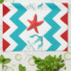 Nautical Beach Red Teal Chevron Anchors Starfish Kitchen Towel