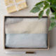 Tissue paper with a beautiful rustic image. Subtle colours of light blue, sandy brown and gentle white. A beach scene with a boat on the shore with a fishing net hanging off the side. An elegant shabby look.